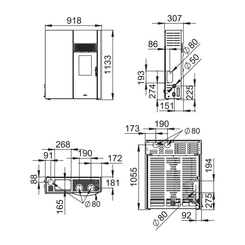 - Possibilité de sortie des fumées supérieure, latérale ou arrière