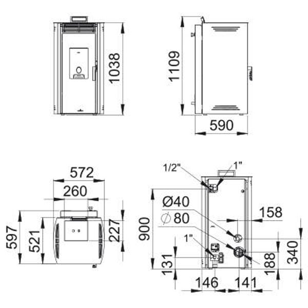 - Diamètre sortie de fumée: 80mm
